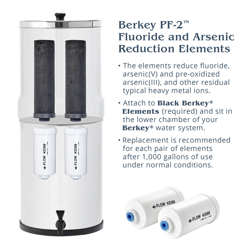 Wenn Ihr Wasser einen Fluoridzusatz hat, empfehlen wir Ihnen dringend, diese leistungsstarken Fluorid- und Arsenfilter zu den Black Berkey Filtern auf Ihrem Berkey-System hinzuzufügen.